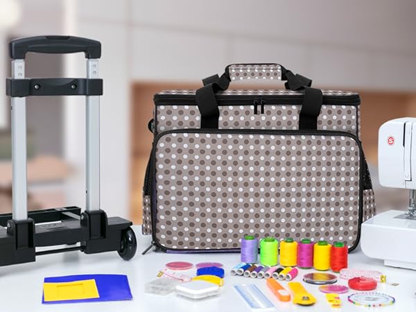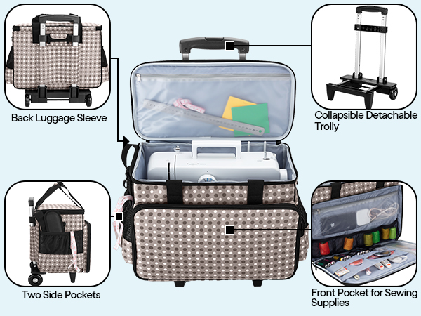 Amazon Com Homest Deluxe Sewing Machine Case With Wheels Rolling Trolley Tote With Multiple Storage Pockets For Accessories Compatible With Singer Brother Machine Grey Patent Design Arts Crafts Sewing
